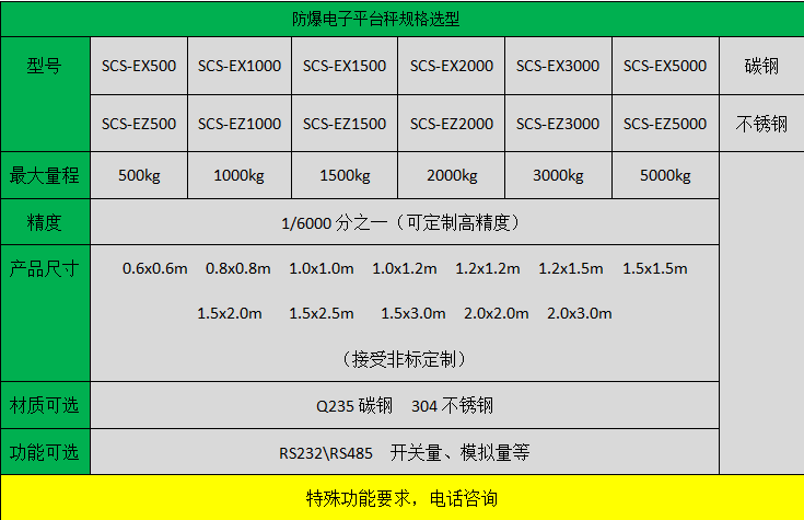 防爆電子平臺秤專為具有爆炸和爆燃危險的產品生產場所開發研制的微電腦控制電子精密稱量設備,可在兵器行業,醫藥和化工品制造裝配、彈體裝藥、裝配檢測稱量,航空航天彈箭飛行器具研制以及民用爆破器材生產中得到廣泛應用